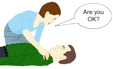 Tap their shoulder and shout "Are you OK?"  If the victim does not respond activate your EMS and emergency response plan and go get or assign someone to get the AED.  TIPS: 9 1 1 or your designated emergency number should be called immediately. For any medical emergency where the victim is conscious, the AED should still be retrieved and available, in the event that it may be needed later - if the victim goes unconscious.  |
